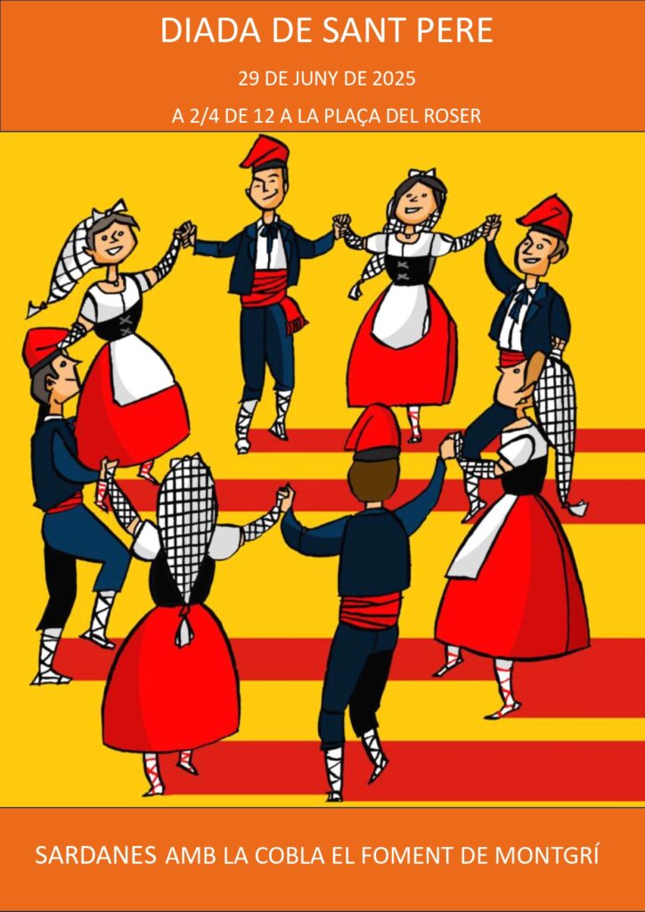 Agenda Diada de Sant Pere Dia 29 de juny de 2025 | A 2/4 de 12 a la Plaça del Roser Diada de Sant Pere Sardanes amb la cobla El Foment de Montgrí Dia 29 de juny de 2025 A 2/4 de 12 a la Plaça del Roser < Entrada AnteriorEntrada Posterior >